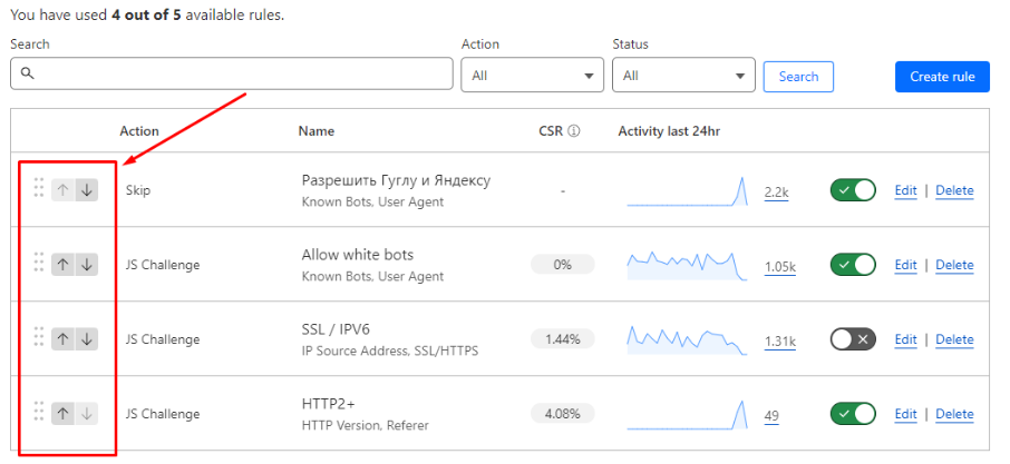 Для того чтобы избавиться от наплыва ботов, необходимо задать базовые правила в Cloudflare.