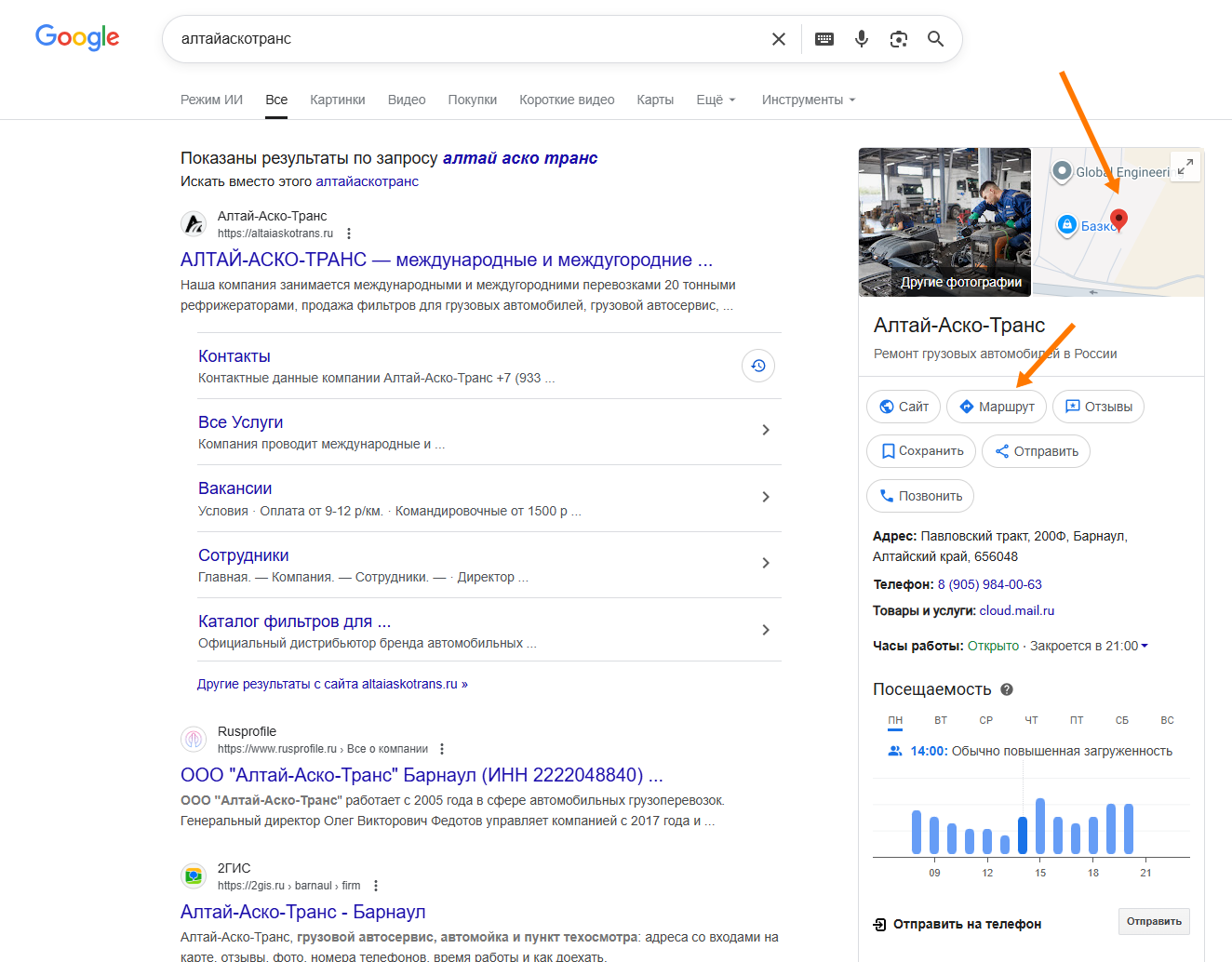 Компания АлтайАскоТранс построила новое здание автосервиса, переехала на новый адрес. Но в гугл картах и старого то адреса не было. А новый тем более не добавить.