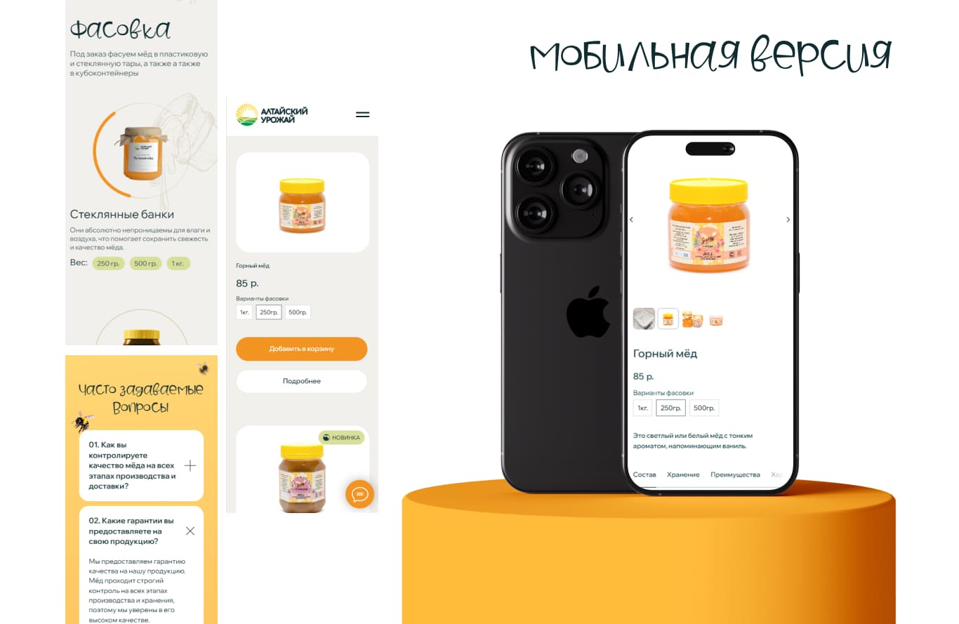 Сайт для компании «Алтайский урожай», специализирующейся на производстве и продаже натурального сибирского мёда и продуктов пчеловодства