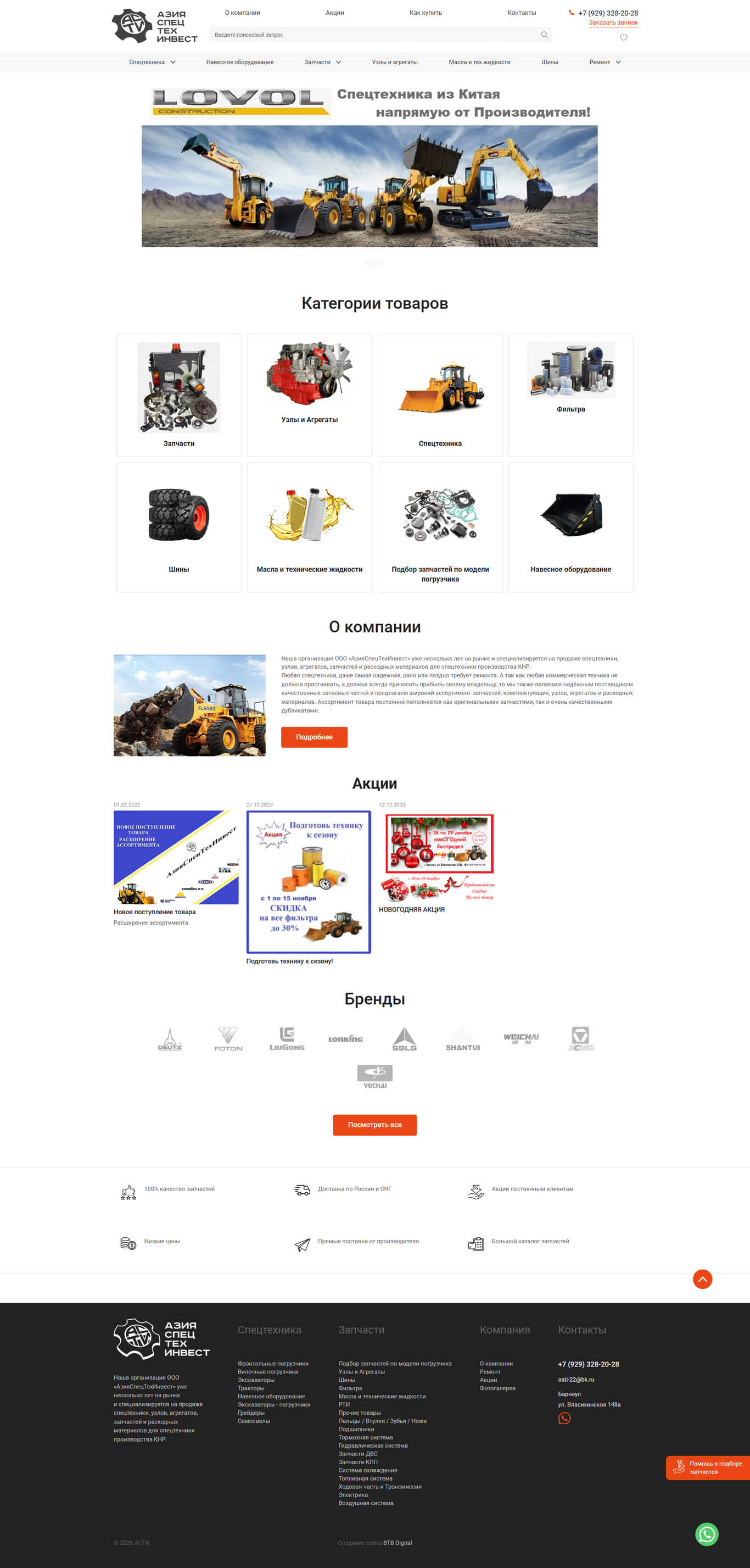 Организация ООО «АзияСпецТехИнвест» уже несколько лет на рынке и специализируется на продаже спецтехники, узлов, агрегатов, запчастей и расходных материалов для спецтехники производства КНР.