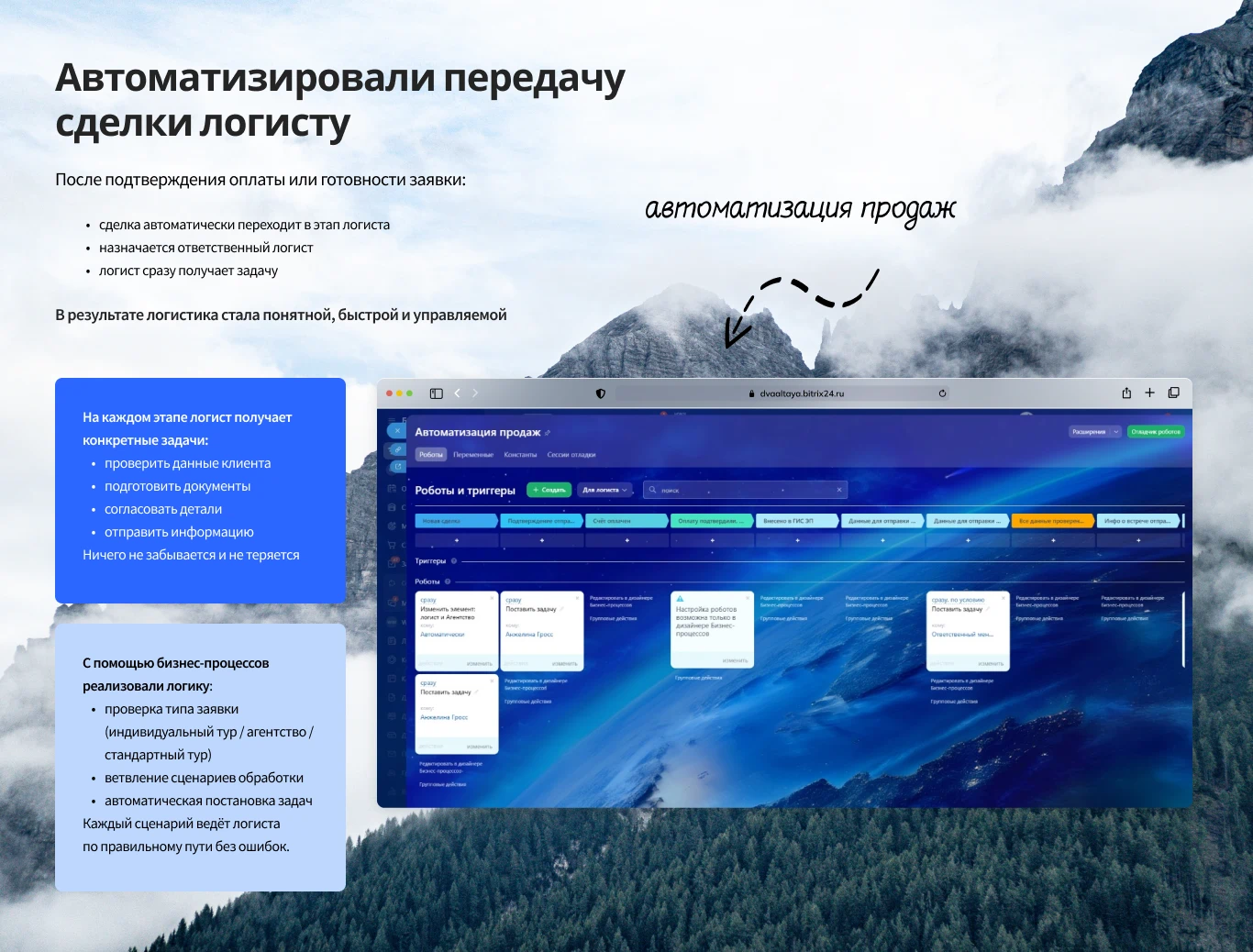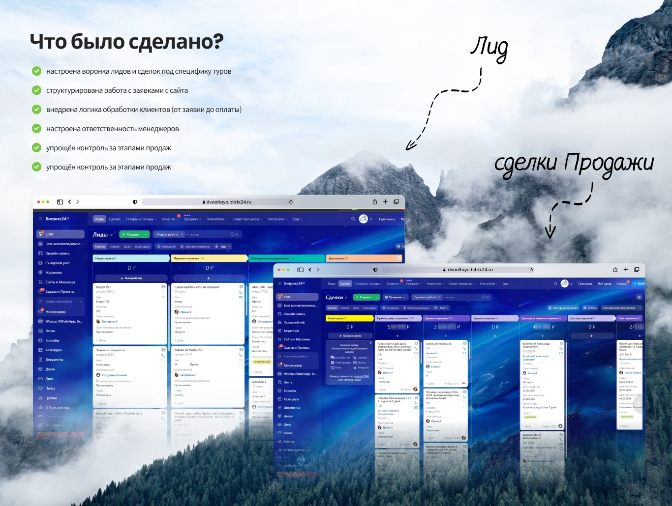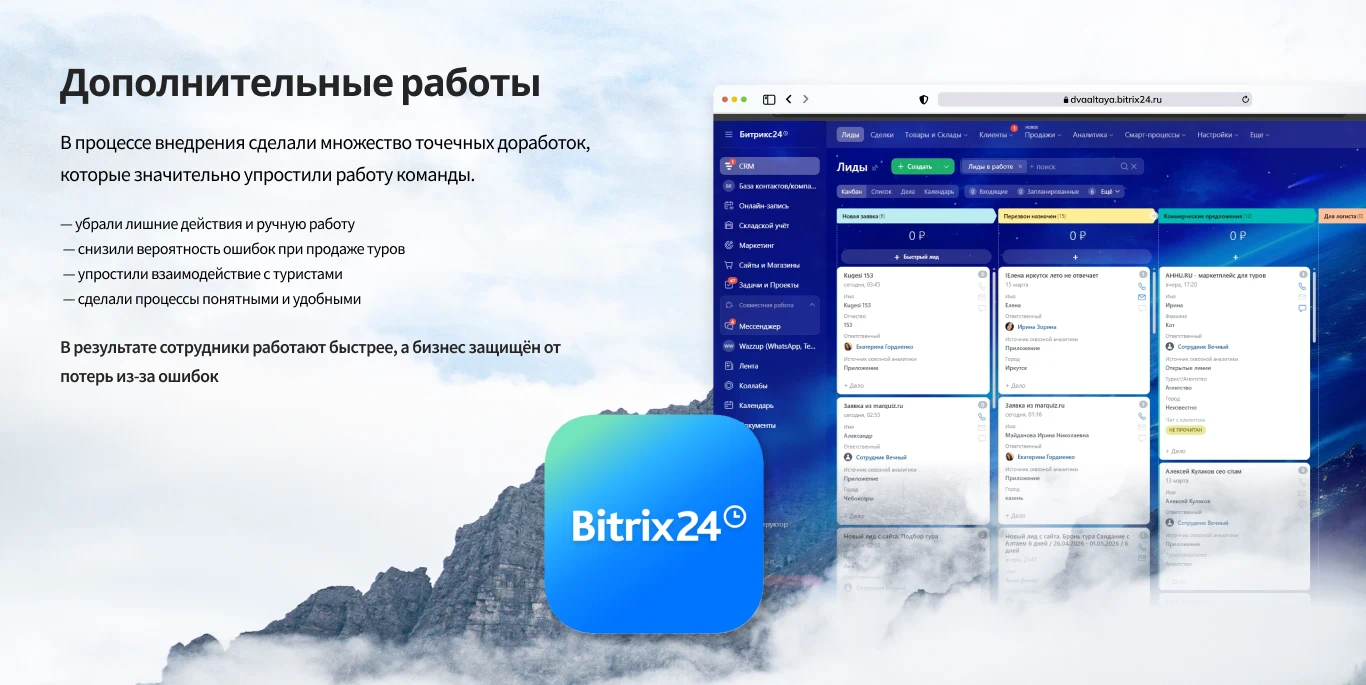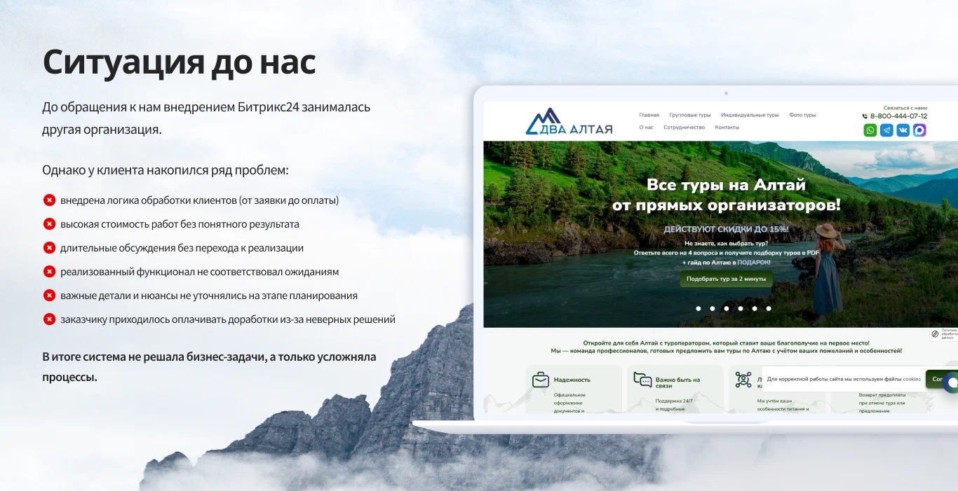 Внедрение Bitrix24 для туристического агентства «Два Алтая», которое специализирующееся на турах по Алтаю.