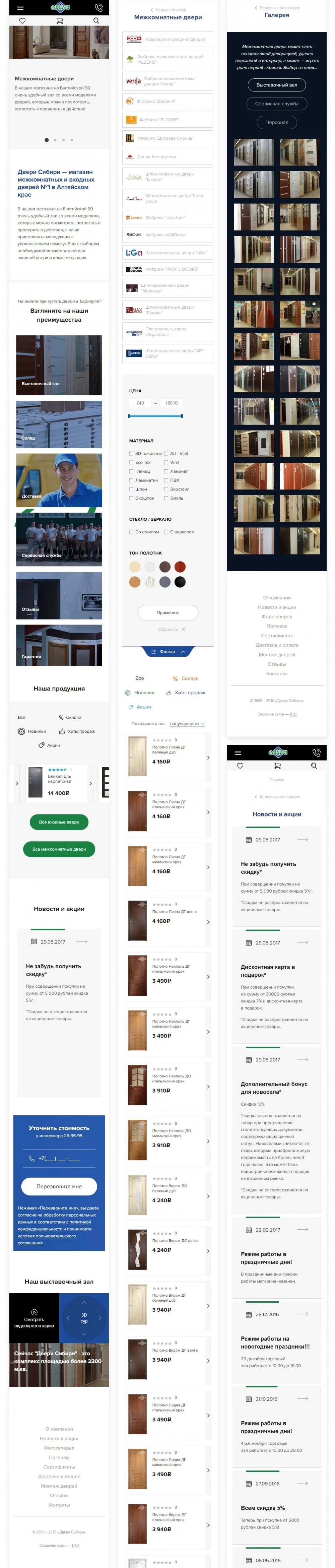 Первая версия сайта Двери Сибири была сделана в далёком 2010 году. На тот момент сайт был «резиновый» и это было круто. Но в 2018 году резиновый сайт уже не круто. Намного важнее, чтобы сайт был адаптивным под мобильные устройства.
