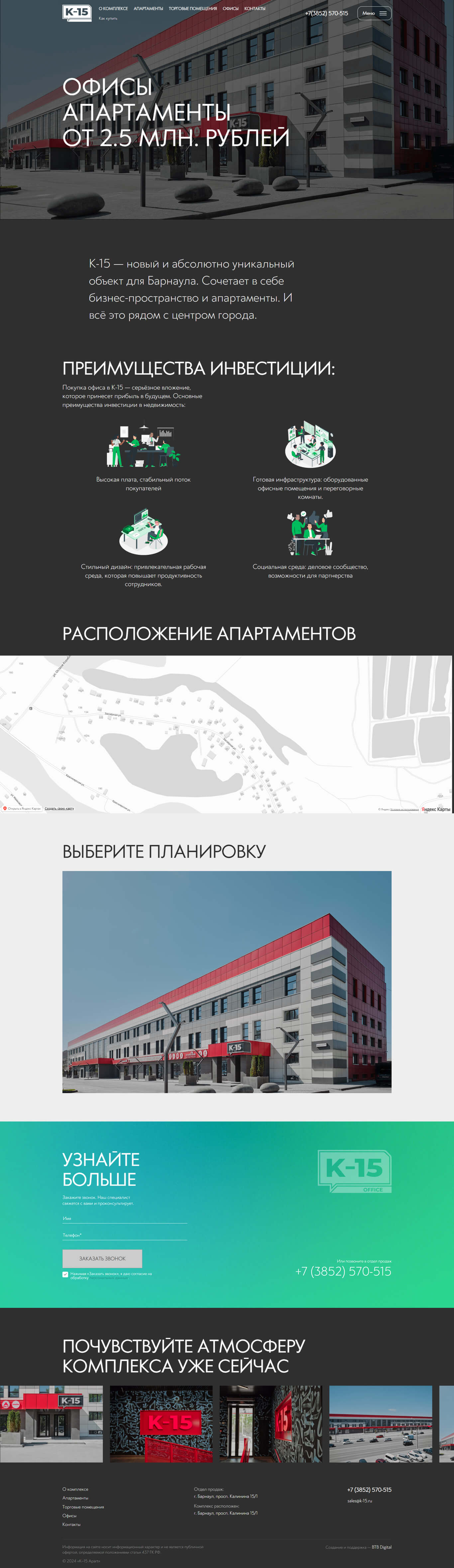 K-15 — это место, где можно не только приобрести помещения для работы и жизни, но также получить полный спектр услуг, необходимых для комфортной и эффективной деятельности. В основе лежит идея о том, что деловой центр должен быть многофункциональным пространством, которое отвечает потребностям разных сфер человеческой жизни.