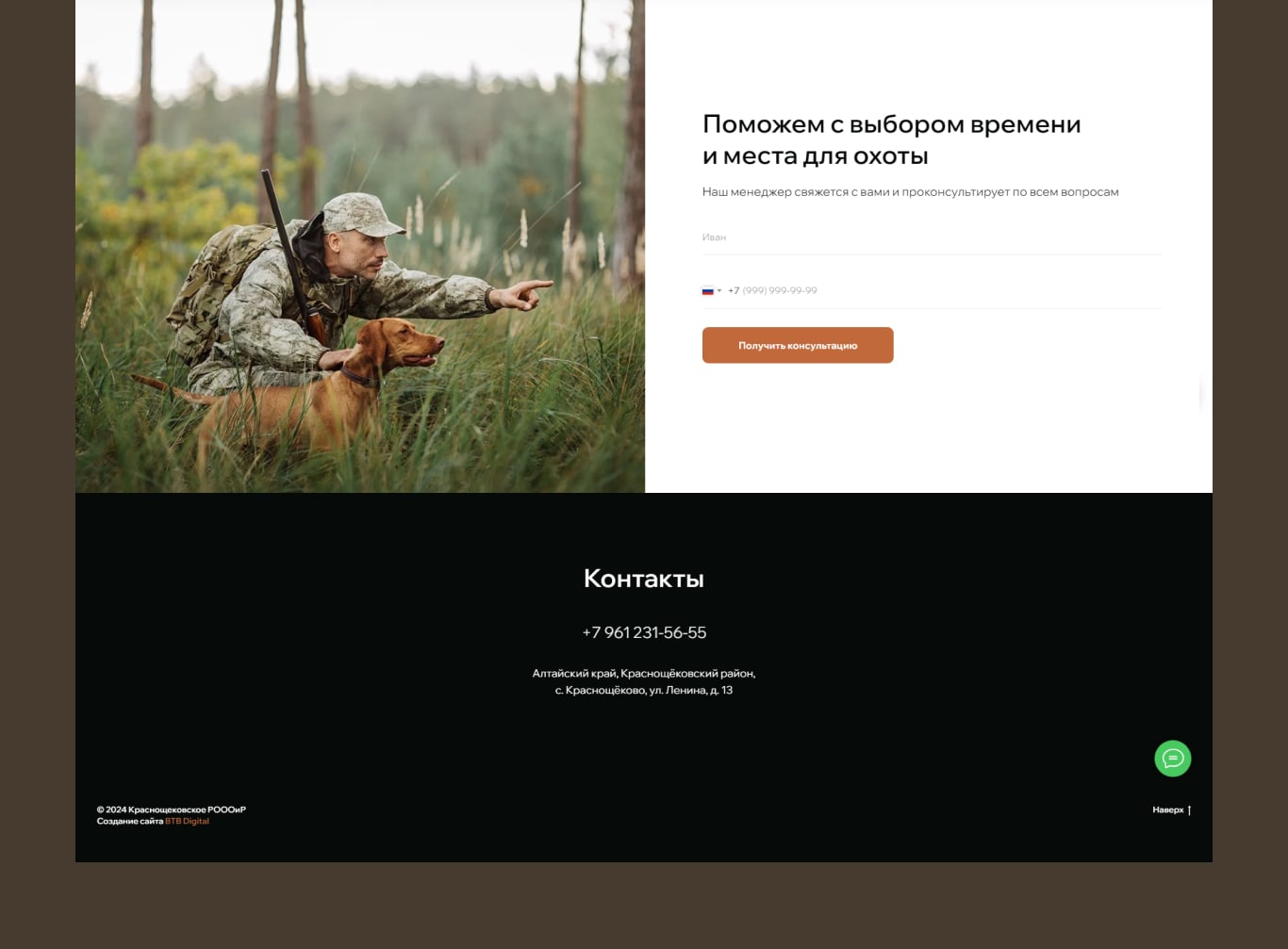 Сайт для Краснощековской районной общественной организация охотников и рыболовов