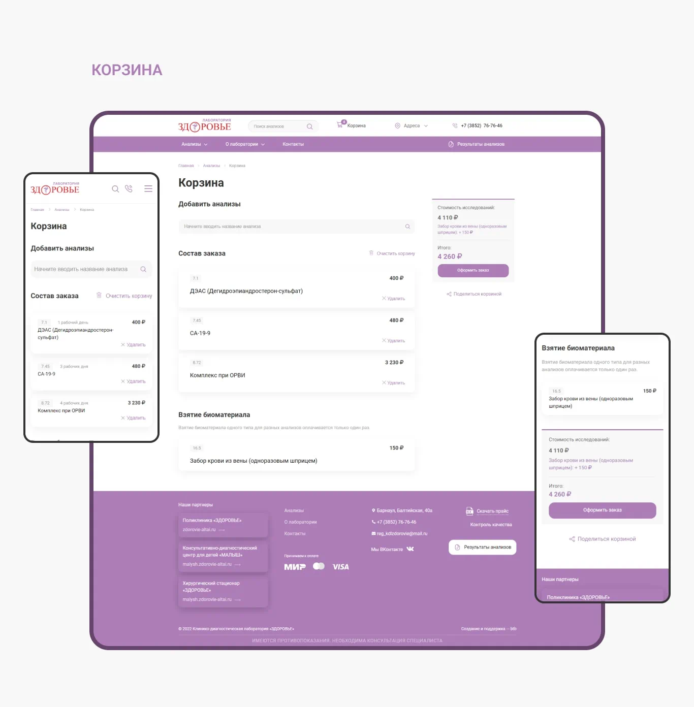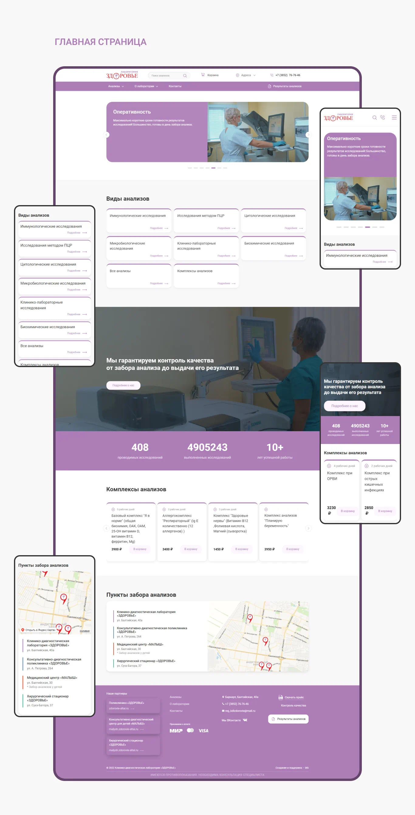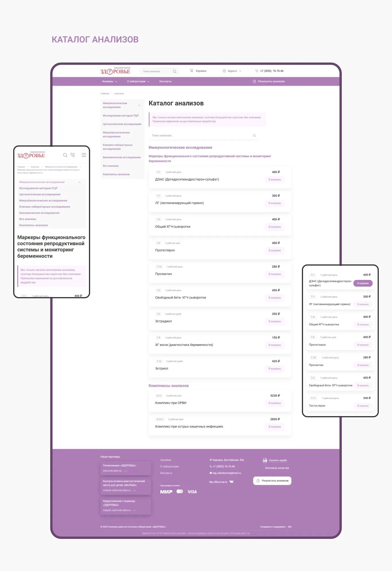 Сайт для клинико-диагностической лаборатории крупнейшей сети медицинских учреждений Барнаула.