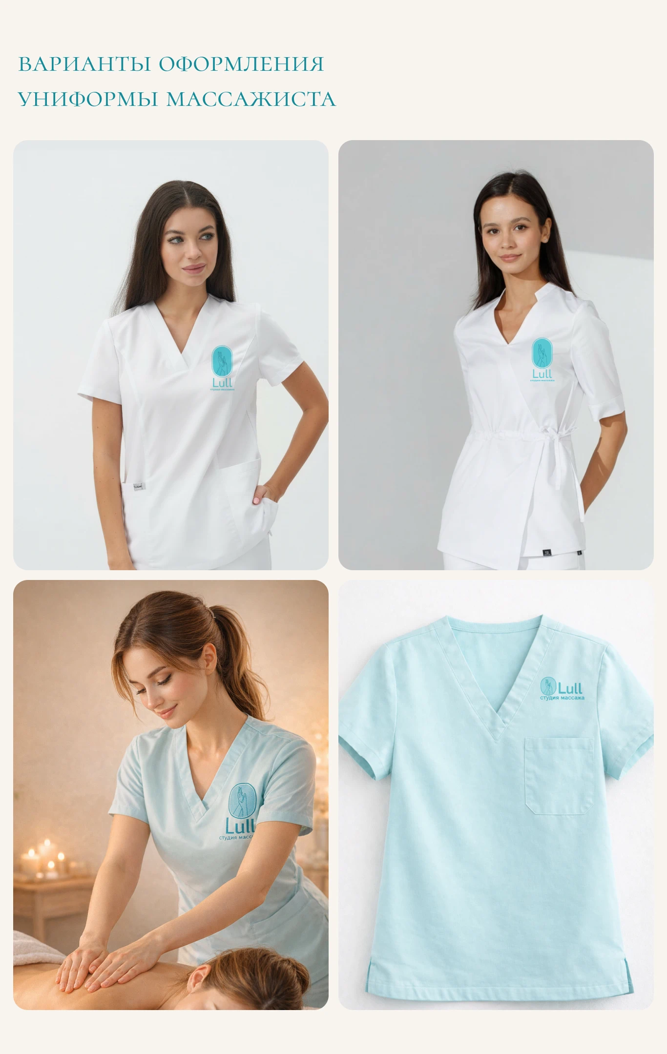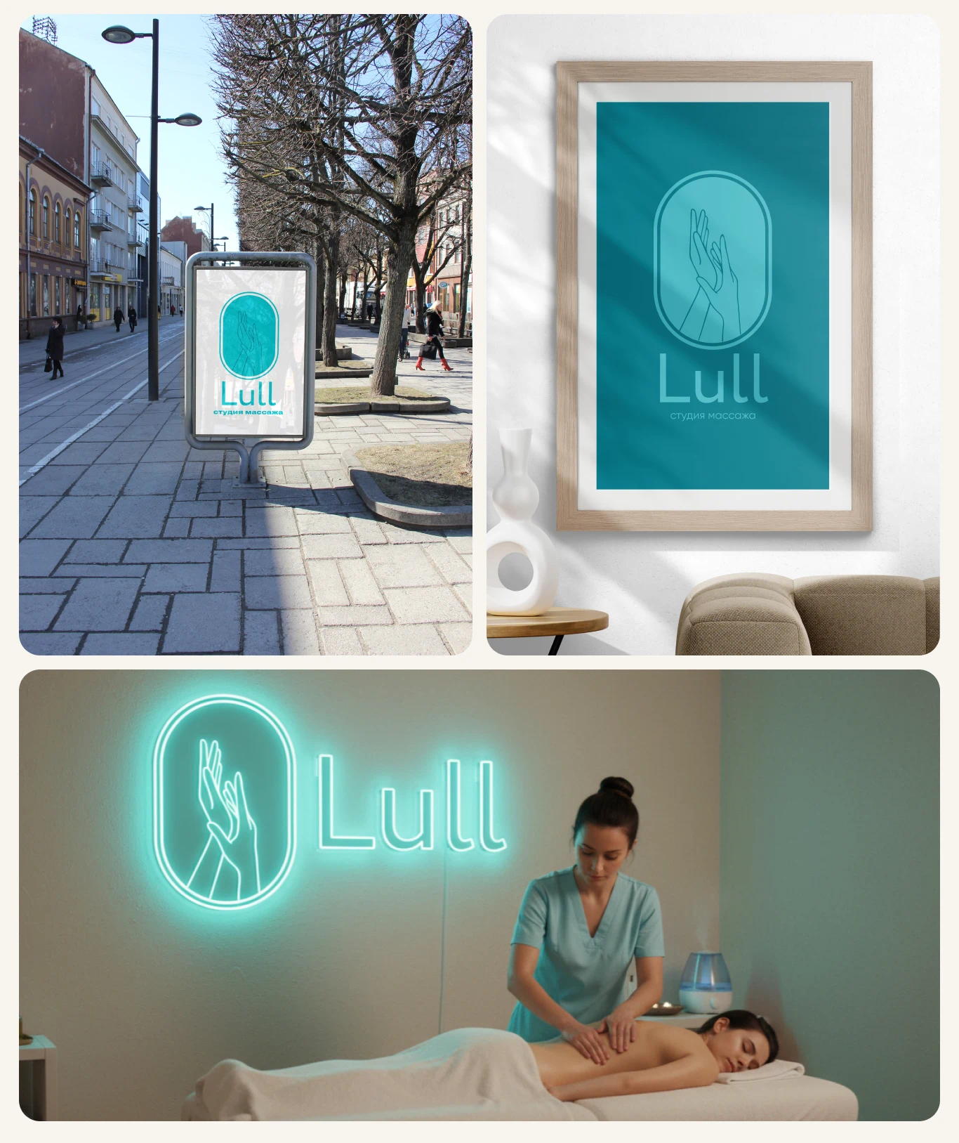 lullmassage.ruИндивидуальная разработка и создание логотипа для студии массажа «Lull» с индивидуальной разработкой. Клиент обозначил идею логотипа и цветовую палитру, мы предложили несколько вариантов и доработали выбранный логотип. Дополнительно показали на носителях, форме и полотенцах для массажа, а также сгенерировали неоновую вывеску.