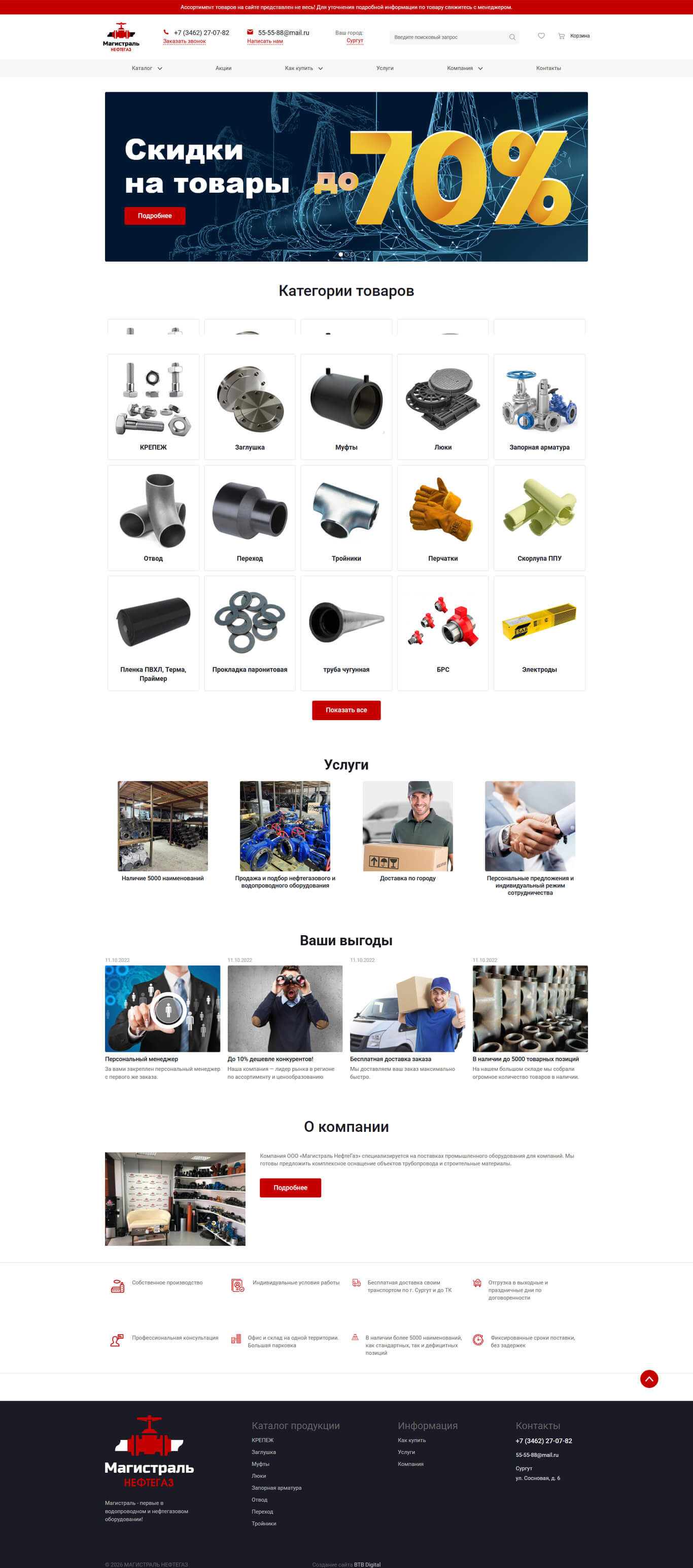 Мы создали современный и удобный сайт для ООО «Магистраль НефтеГаз», которая занимается поставкой и обслуживанием нефтегазового оборудования, а также систем тепловодоснабжения.