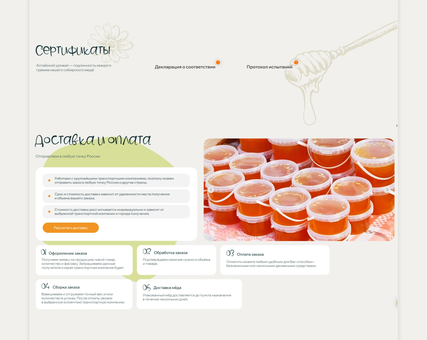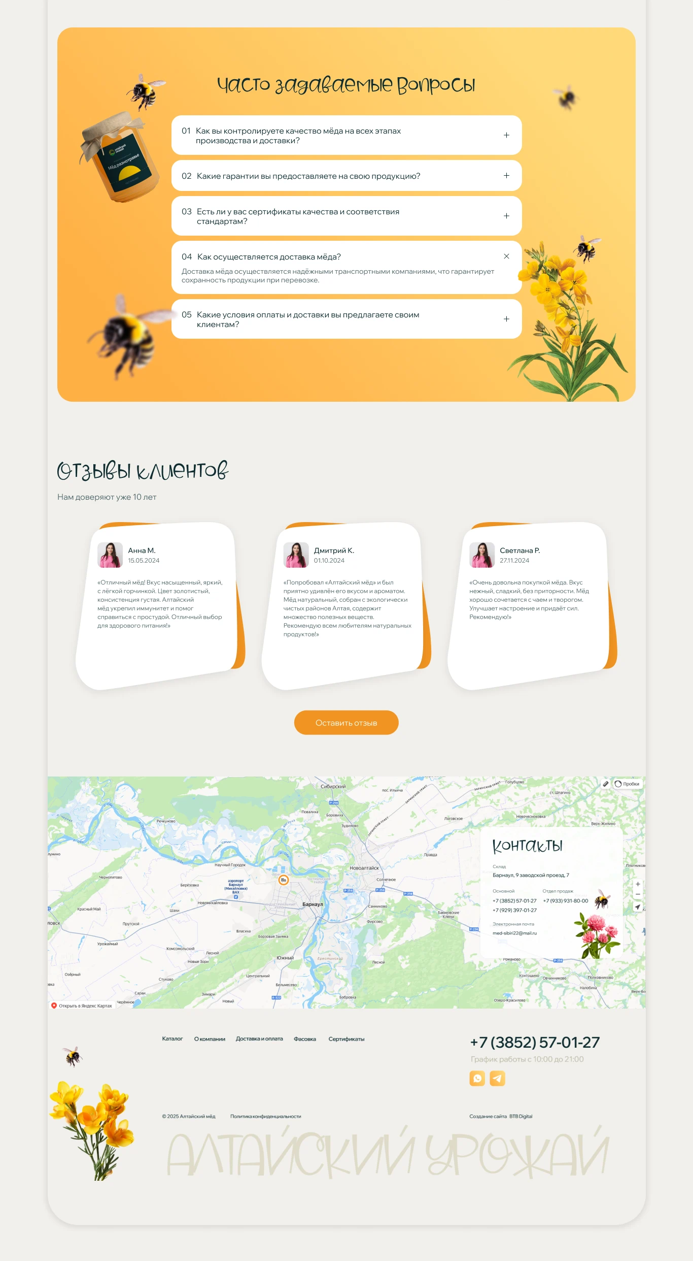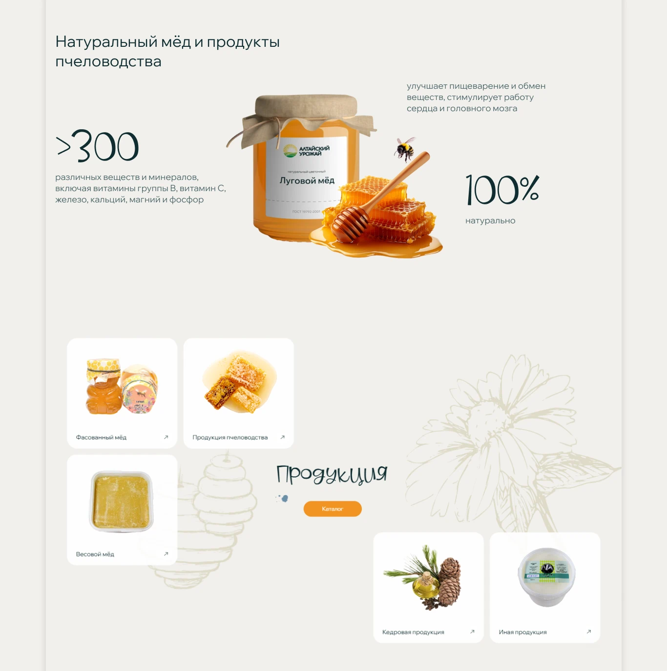 Сайт для компании «Алтайский урожай», специализирующейся на производстве и продаже натурального сибирского мёда и продуктов пчеловодства