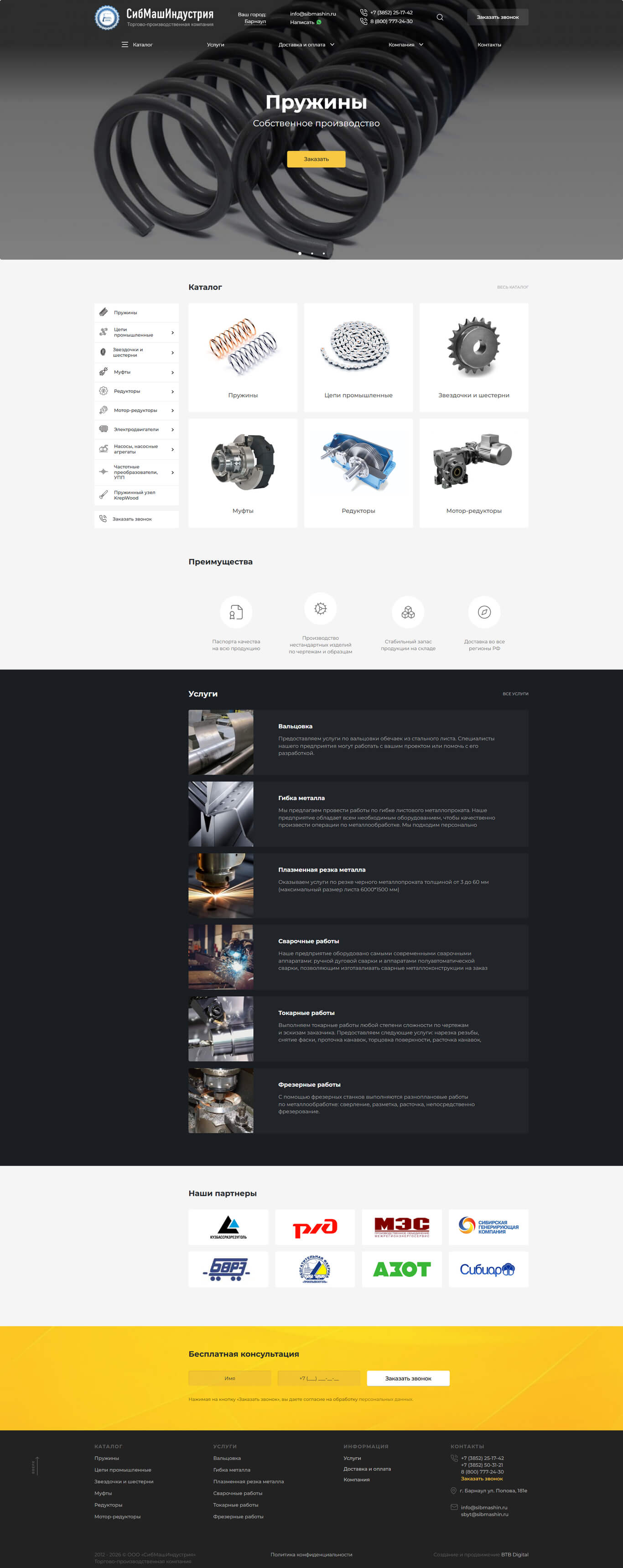 Новый сайт предлагает полный каталог продукции и возможность быстро связаться со специалистами. Сайт разработан на основе готового решения с последующими доработками. Также были проведены работы по SEO-продвижению.