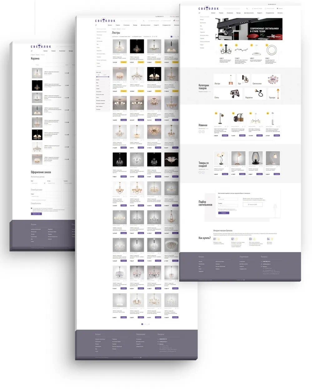 Светолок это один из самых сложных и интересных наших проектов. Потому что сайт делался с индивидуальным дизайном, с объемными фильтрами, необычными карточками товара, с функциональным модулем подбора города, который автоматически все заполняет. С прошлого года мы оказываем техподдержку сайта, помогаем обновлять каталоги, так как наименования товаров достигает 10 тысяч. Также занимаемся SEO продвижением и PPC.