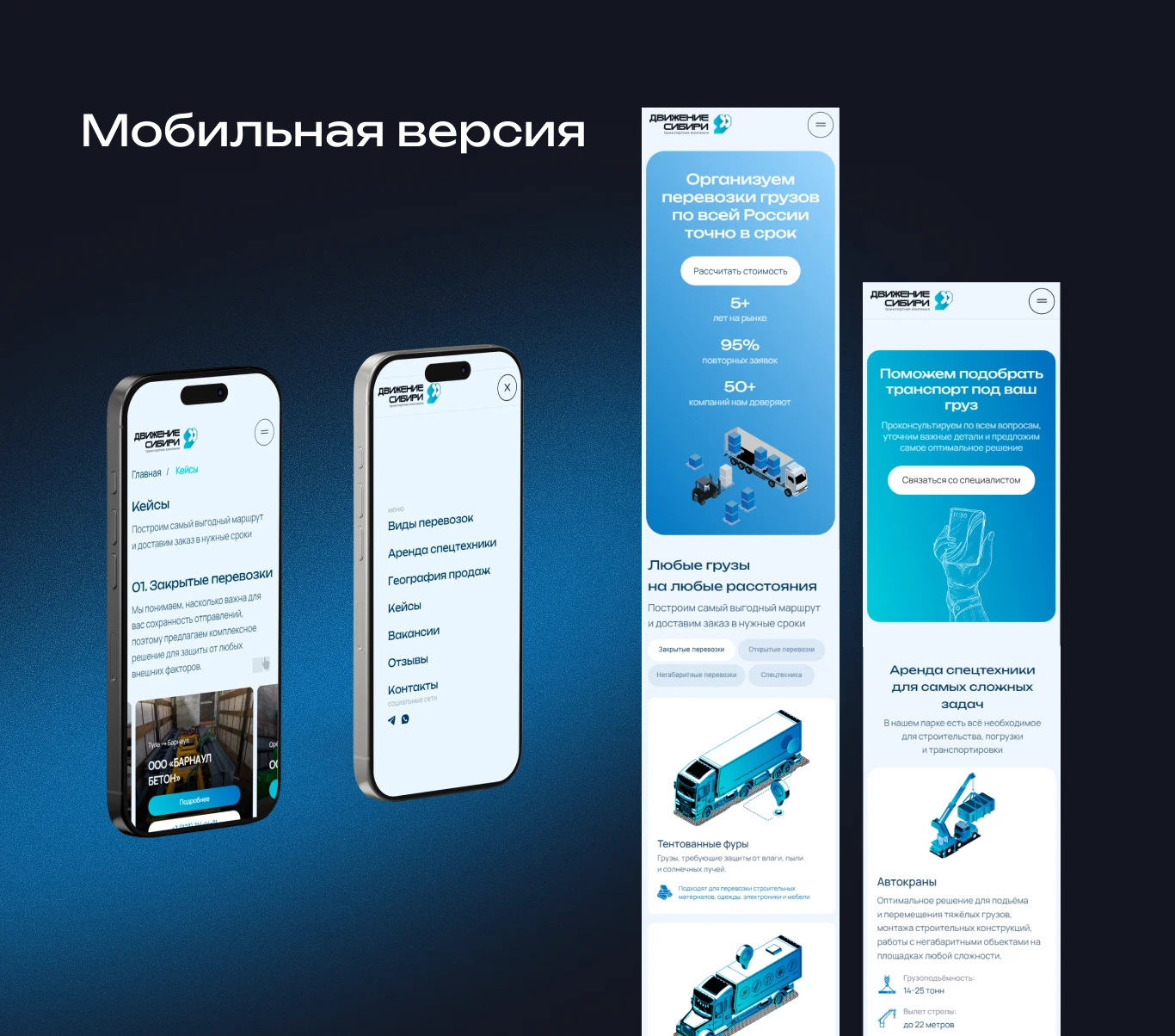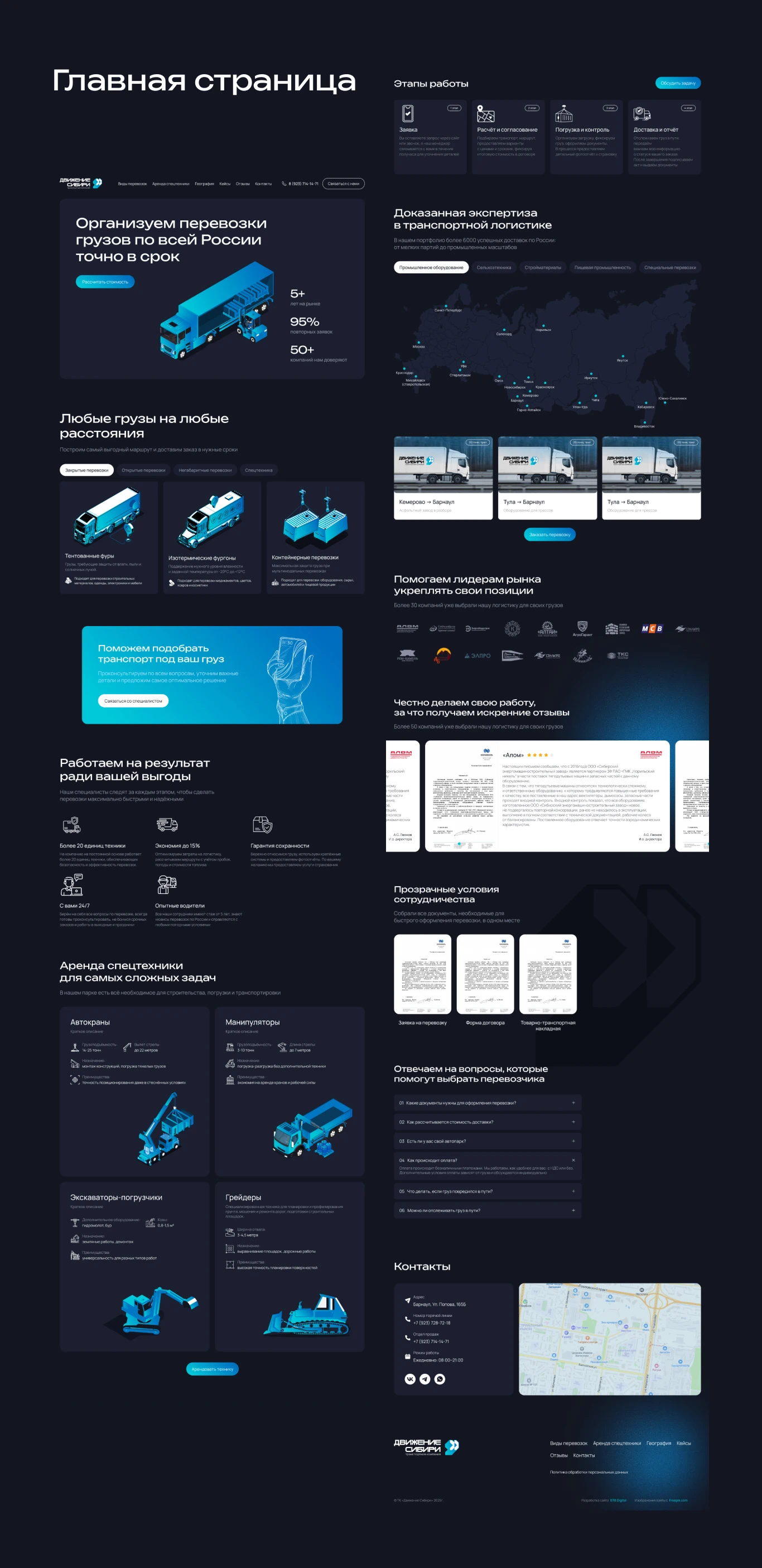 Сделали новый сайт для транспортной компании «Движение Сибири», занимающейся перевозкой грузов по всей России