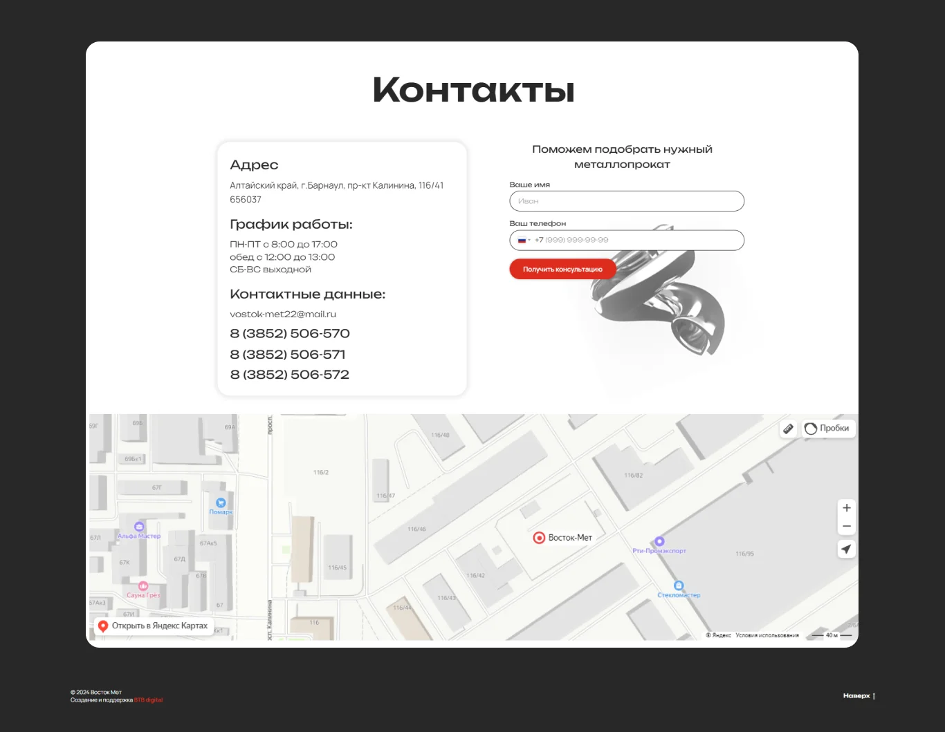 vostokmet.ruСоздали лендинг для металлопроката «Восток-Мет» по продаже и нарезке металла
